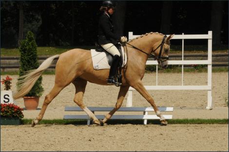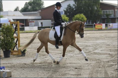 Am vergangenen Freitag konnte Heike mit Chameur den ersten Turniererfolg verzeichnen. Der hübsche 4-jährige Palomino präsentierte sich bei seinem zweiten Turnierstart in der Dressurpony-Prüfung ganz hervorragend und wurde mit einer 7,4 und einem 5.Platz belohnt.